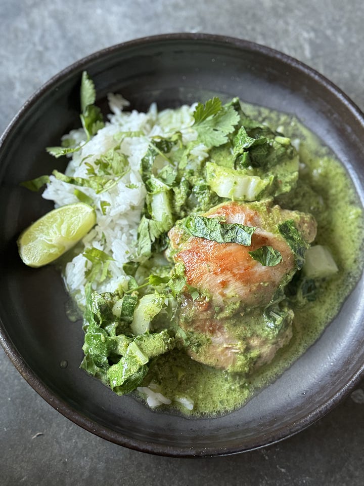 Sicilië of niet, jullie blijven in mijn gedachten. Hier gaat het dit weekend eindelijk regenen en daarom in deze nieuwsbrief een gerecht om thuis mee op de bank te liggen. Ik maak het heel vaak: 1-2-3 curry. Een pijlsnelle, gezonde groene curry die in 30 minuten op tafel staat. Het leuke aan deze curry is dat je ‘m helemaal from scratch maakt met verse ingrediënten, ook de kruidenpasta. Daarnaast gaat er een goeie berg groenten in en heeft hij heel veel smaak. Ik heb hier ook al eens een 1-2-3 gnocchi recept met pistachepesto gedropt dus ik val in herhaling met 1-2-3 gerechten, maar wat is daar mis mee? Gerechten die je keer op keer maakt en uit je hoofd leert kennen zijn de beste. Je kunt er op terugvallen in noodgevallen en ze helemaal naar je handzetten.