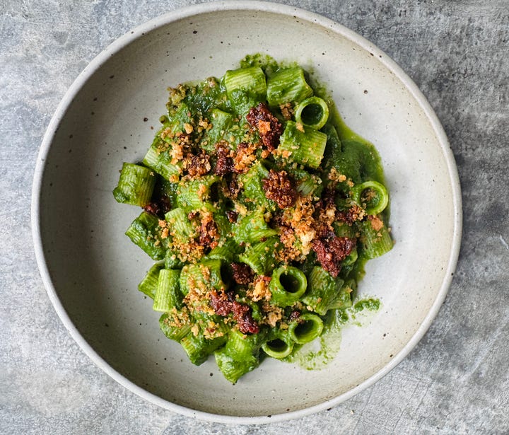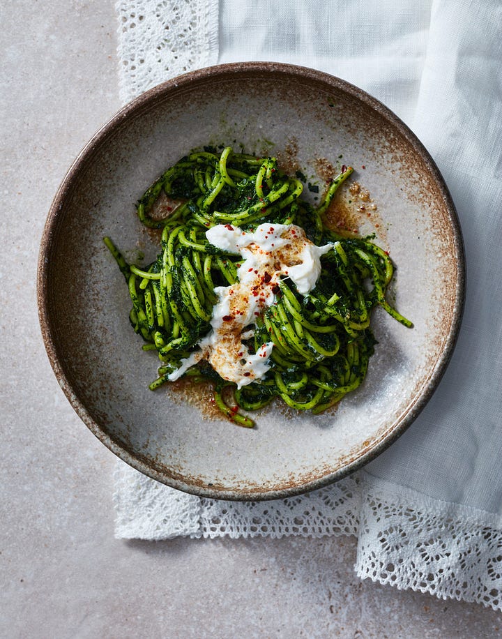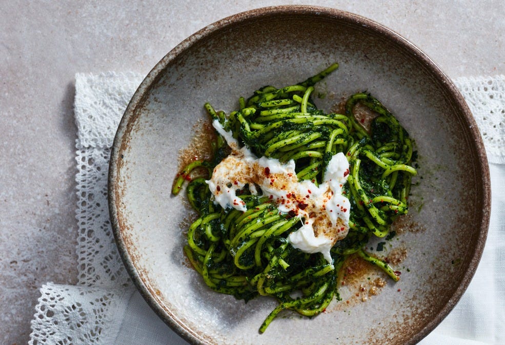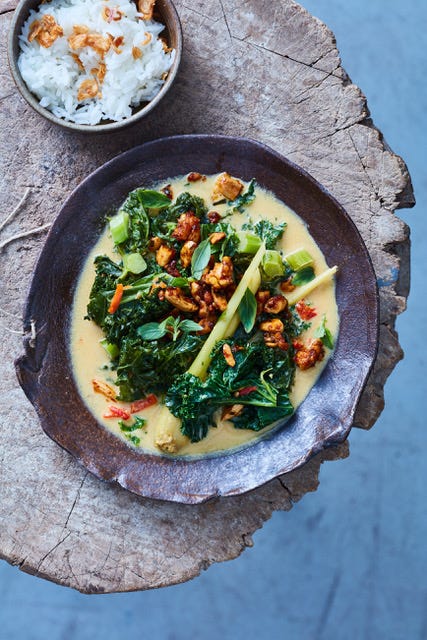 De recepten voor pasta met boerenkool en ‘nduja, pasta met palmkool, burrata en gekaramelliseerde misoboter, Indonesische gulai (vergelijk het met een curry) met boerenkool en urap urap met palmkool staan in het betaalde gedeelte van deze nieuwsbrief.